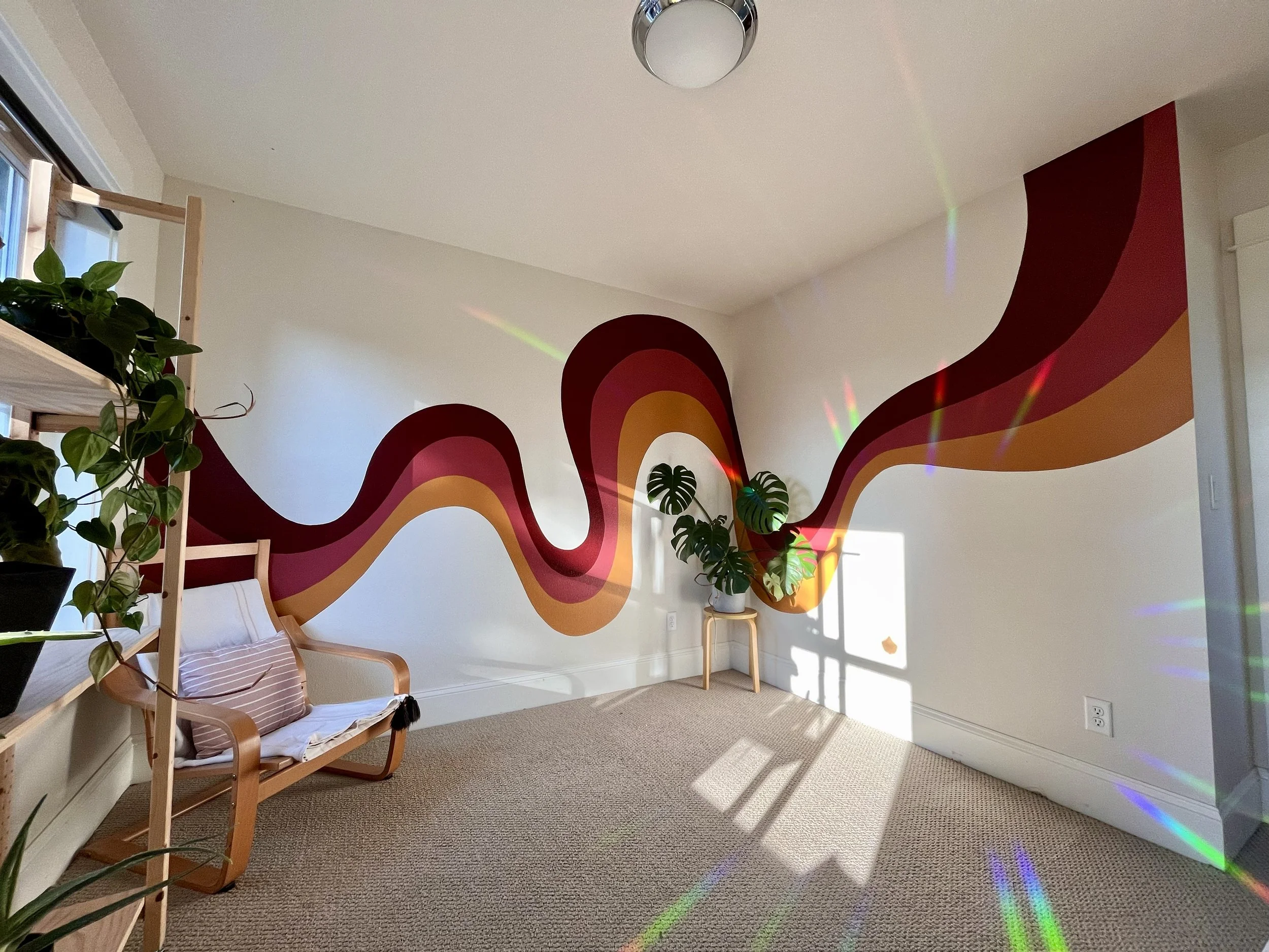 Commissioned by a local Portland homeowner, I designed and hand-painted this ~ groovy ~ office mural to liven up the space.